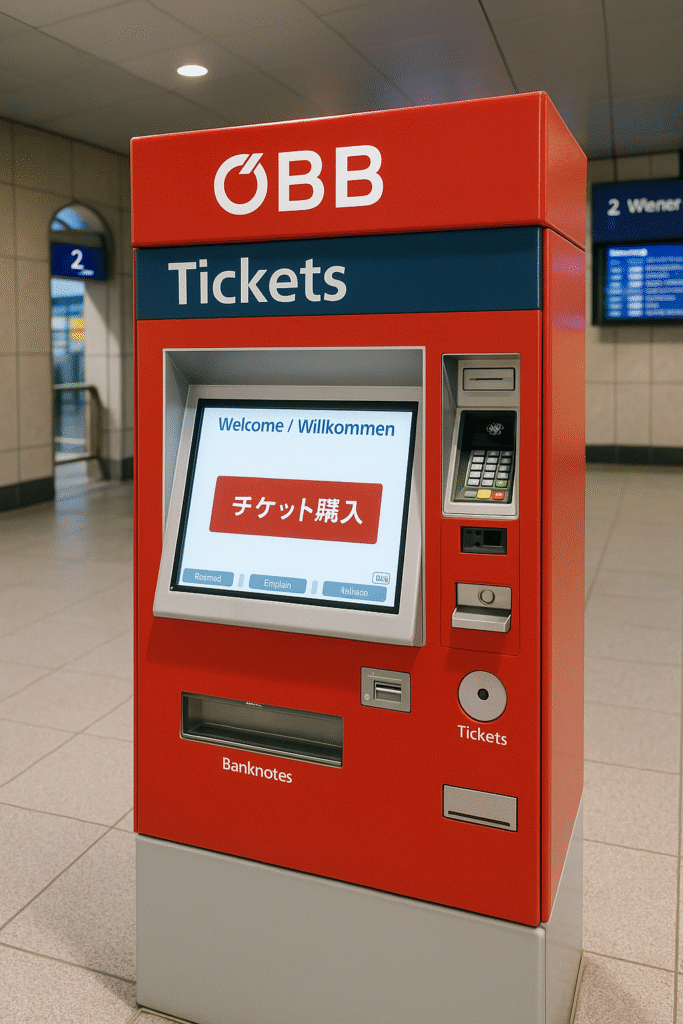 ÖBB公式券売機(到着ロビー & ホームに設置された機械でチケット購入)