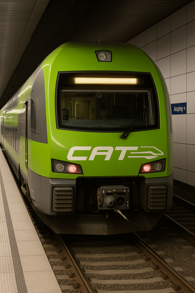 ÖBB レイルジェットと同じく地下に駅のホームがあります。地下には、Railjet (黄色のホーム)、CAT(灰色のホーム)、バス乗り場の三つが並んでいますので、基本的にはCATの標識を頼りに進めば大丈夫!