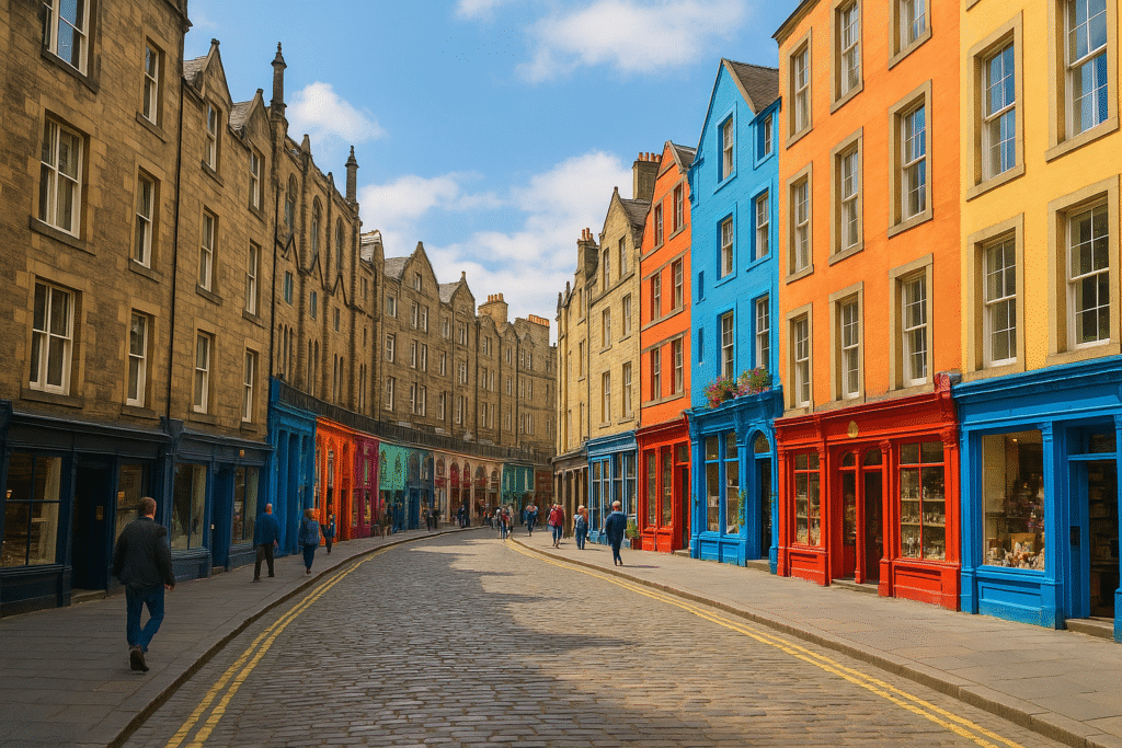 エディンバラ旧市街にある「ヴィクトリア・ストリート」は、石畳のゆるやかな坂にカラフルなショップが並ぶ、とてもフォトジェニックな通りです。曲線を描くように続く独特の街並みが、ハリー・ポッターの「ダイアゴン横丁」のモデルになったのでは? と噂され、世界中のファンが訪れる人気スポットになっています。